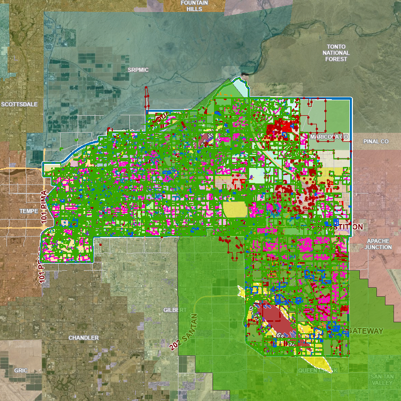 This application provides a view of city zoning, and general plan layers, as well as tools to identify and research city planning cases, and detailed parcel information